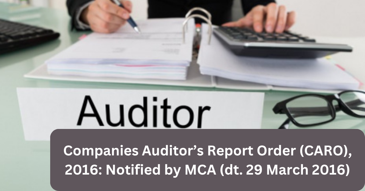 MCA Notification dt 29th March 2016 reg. CARO 2016 Abstract In exercise of the powers conferred by sub-section (11) of section 143 of the Companies Act, 2013 (18 of 2013) and in supersession of the Companies (Auditor’s Report) Order, 2015 published in the Gazette of India, Extraordinary, Part II, Section 3, Sub-section (ii), vide number S.O. 990 (E), dated the 10th April, 2015, except as respects things done or omitted to be done before such supersession, the Central Government, after consultation with the, committee constituted under proviso to sub-section (11) of section 143 of the Companies Act, 2013 hereby makes the following Order, namely:-
